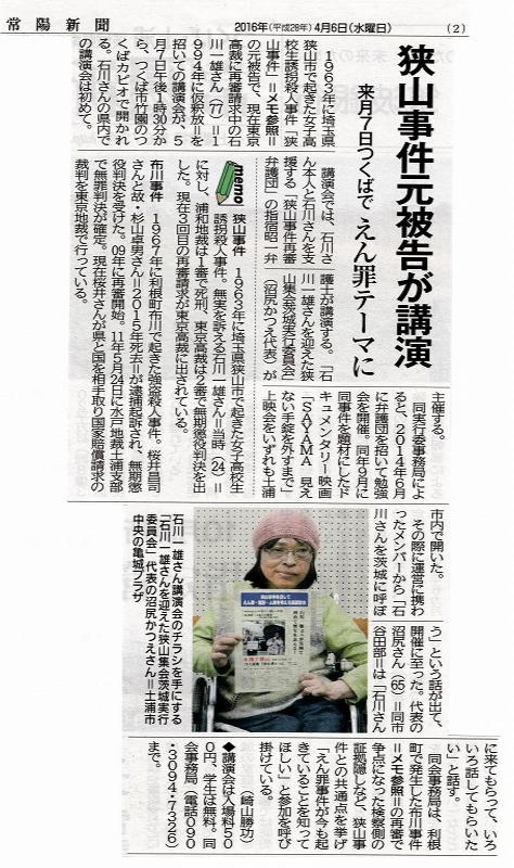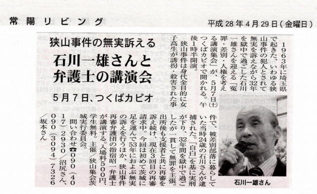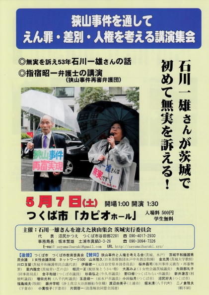 石川さんの長い闘いにご支援をくださいます皆さん、有り難うございます。布川事件は、お陰様で勝利しました。もう5年になります。しかし、まだ石川さんの狭山事件は闘いが続いています。